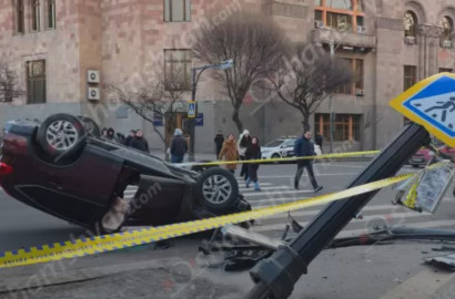 Խոշոր ավտովթար՝ Երևանում. Հանրապետության հրապարակում «Honda»-ն բախվել է կայանված «Lexus»-ին, անցել կանաչ գազոնի վրայով, կոտրել հետիոտնի համար նախատեսված լուսակիրն ու ցուցանակը և գլխիվայր շրջվել. կա վիրավոր