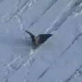 Ագռավը հաճույք է ստանում տանիքից սահելիս. տեսանյութ