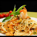 Սպագետի մանրածովախեցգետնով և պիստակով