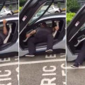 Գեր տղամարդն ամեն կերպ փորձում է դուրս գալ նեղ ու փոքրիկ մեքենայից (տեսանյութ)