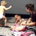 Ինչպես է երիտասարդ մայրիկը միաժամանակ փոխում 4 չարաճճի փոքրիկների հագուստը (տեսանյութ)