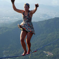Աղջիկը բարձրակրունկերով անցել է 840 մ բարձրությունում գտնվող լարի վրայով (տեսանյութ)