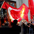 Ջահերով երթի մասնակիցներն այրեցին Թուրքիայի և Ադրբեջանի դրոշները