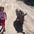 Փոքրիկ աղջնակը ռնգեղջյուրի հետ է ընկերություն անում (տեսանյութ)