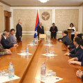 Կարեն Կարապետյանի ծանր վերադասավորումը Սերգեյ Մինասյանը նշանակվել է Ռումինիայում ՀՀ դեսպան Հայաստանի եւ Ադրբեջանի ԱԳ նախարարների հանդիպման հստակ օրը դեռ նախանշված չէ Վիգեն Քոչարյանը ներկայացրել է Մարդու իրավունքների պաշտպանության ազգային ռազմավարությունից բխող գործողությունների ընթացքը Դասագրքային ճշմարտություններով պետություն չեն կառուցում Երևանի քաղաքապետ Տարոն Մարգարյանը շնորհավորել է Ուսանողության միջազգային օրվա առթիվ Գյուղնախարարությունում քննարկվել են Հայաստանում ԳՁՕ-ների գործածության կենսաանվտանգությանը վերաբերող հարցեր Արա Բաբլոյանն ընդունել է Նիդերլանդների Սենատի նախագահին Երևանի քաղաքապետ Տարոն Մարգարյանի ուղերձը Ուսանողության միջազգային օրվա առթիվ Հայաստանը թվային հասարակություն կերտելու ճիշտ ուղու վրա է, այնպիսին, ինչպիսին աշխարհը երբևէ չի տեսել. Թոնի Ֆադել ՀՀ-ում Ղազախստանի դեսպանը համագործակցության հարցեր Է քննարկել Հայաստանի ԶԼՄ-ների ներկայացուցիչների հետ Կառավարության ծրագրերն իրականացնելու պարագայում հաջորդ տարի մեկ շնչին բաժին ընկնող ՀՆԱ-ի աճ կլինի. նախարար Դավիթ Հարությունյանն ընդունել է Հայաստանում Ֆրանսիայի նորանշանակ դեսպանին Քաղաքապետ Տարոն Մարգարյանը ներկա է գտնվել «ՀՊՏՀ լավագույն ուսանող 2017» մրցանակաբաշխությանը Բակո Սահակյանը Նիկոլայ Սարկիսովին է հանձնել «Վաչագան Բարեպաշտ» մեդալը Վարչապետը հանձնարարել է պարզեցնել շինարարական թույլտվությունների տրամադրման գործընթացը Արա Բաբլոյանը Հայաստանի եւ Նիդեռլանդների միջեւ համագործակցության զարգացման մեծ ներուժ է տեսնում Կառավարությունը ֆինանսական աջակցություն է տրամադրում ԱԺ անցած քաղաքական ուժերին ԱԺ «Ծառուկյան» խմբակցությունը չի ցանկանում կիսել բյուջեի իրականացման քաղաքական պատասխանատվությունը Ձնագունդը կարող է գլորվել ու մեծանալ՝ անգամ անկախ նախաձեռնողներից Ալեքսանդր Մանասյան. «ԵՄ և ԵԱՏՄ–ի միջև կամուրջի դերը պահանջարկված է, և դրա լավագույն թեկնածուն Հայաստանն է» Վարդան Հարությունյանն ընդունել է Համաշխարհային բանկի պատվիրակությանը Արթուր Ջավադյանը կմասնակցի ԵԱՏՄ ազգային բանկերի արժութային քաղաքականության խորհրդատվական խորհրդի նիստին ԵՊՀ-ում դասապրոցեսն ամբողջովին վերականգնվել է և բնականոն ընթացքի մեջ է Լևոն Մկրտչյանն ընդունել է Հայաստանում Ֆրանսիայի նորանշանակ դեսպանին ԱԺ քառօրյա. պատգամավորները շարունակում են քննարկել ՀՀ 2018թ. բյուջեի նախագիծը. ՈՒՂԻՂ Ռուսաստանն ու Հայաստանը միավորում են իրապես դաշնակցային հարաբերությունները. Պուտին Հայաստան կայցելի Բրազիլիայի արտաքին հարաբերությունների նախարարը Ռուսաստանում Հայաստանի օրերն աննախադեպ աշխարհագրական ընդգրկում են ունենալու. ՀՀ դեսպան Հայ-ռուսական դաշնակցային հարաբերությունների առաջընթացը բոլոր ուղղություններով ակնհայտ է. ՀՀ Նախագահ