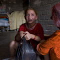 Папа жестоко наказал свою дочь , за то что она не хотел идти в школу. Он жостко избил дочь и привязовал к скутеру, спокойно потащил ее по дороге, покрытой щебнем.