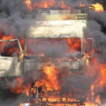 Սպիտակի ոլորաններում բեռնատար է այրվել