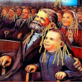 Տասը տիրադավ եպիսկոպոսներին ուղեկցում են դեմքերը փակած ինչ-որ մարդիկ․ Էդմոն Մարուքյան