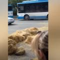 Ситуация на перекрестке Комитаса-Гюльбенкяна в Ереване напряженная: протестующие перекрыли дорогу тюками сена