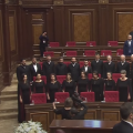 ԱԺ հերթական նստաշրջանը սկսվեց երգչախմբի կողմից ՀՀ օրհներգի կատարմամբ և Մհեր Սահակյանի հիշատակը մեկ րոպե լռությամբ հարգելով