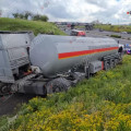 «DAF» բեռնատարը Արզնու խճուղի ընթանալիս բախվել է բազալտե քարերով սարքված պատին, ապա հողաթմբին