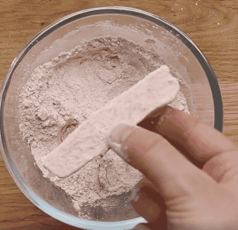 Պանիրը թաթաել ալյուրի ու պղպեղի մեջ ու տապակել։