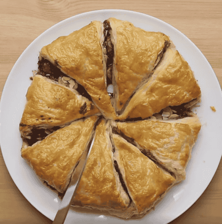 Խմորը եռանկյունաձև կտրատել, շարել արևածաղկի ձևով։