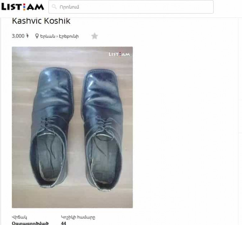 Օրվա կադր list.am-ից. տեսեք ինչ են վաճառում (ֆոտո) ՖՈՏՈ 22 Հոկտեմբեր, 2016 12:43 Կիսվել Ցանկացողները կարող են վաճառվող առարկան գտնել այս հղումով: Կիսվել Լրահոս Ռոբերտ Արզումանյանը՝ Ռոմարիոյի, Դունգայի և Լամի կողքին. The Guardian-ը ընտրում է 2025 թ. աշխարհի լավագույններին Դեղատան պահեստային հատվածում բռնկված հրդեհը մարվել է Վարդենիսի տարածաշրջանում տեղում է ձյուն. Վարդենյաց լեռնանցքում բուք է Աշխարհի 10 ամենաերկար թունելները Տեղի է ունեցել Հայաստանում հավատարմագրված դիվանագիտական ներկայացուցչությունների ղեկավարների պաշտոնական ընդունելություն Գազ չի լինելու Սալմոնելա, E. coli․ վտանգավոր մանրէներ է հայտնաբերվել շուկայում տարածված պելմենիների մեջ Իրանն ի սկզբանե դեմ է եղել «Զանգեզուրի միջանցքին»․ Ալի Աքբար Վելայաթի Սամվել Շահրամանյանին հրավիրել են հարցաքննության Էյնշտեյնը կրկին ճիշտ է. Աստղագետները գտել են սև անցք, որը «քաշում» է տարածություն-ժամանակն իր հետևից Կադիրովը դժգոհ է Վրաստանից Թուրքիայում անօդաչու թռչող սարք է խոցվել Առաջարկվում է երկարաձգել էլեկտրոնային եղանակով հարկադիր կատարման դիմում ներկայացնելու համակարգի ներդրման ժամկետը Զարգանում է ռազմատեխնիկական համագործակցությունը․ ամփոփվել են ՀԱՊԿ երեք տարիները Վաղարշապատի համայնքային ոստիկանները ապօրինի թմրանյութ պահելու դեպք են բացահայտել Իրանում Հայաստանի դեսպանը ԻԻՀ գերագույն առաջնորդի խորհրդականին ներկայացրել է Հայաստան–Ադրբեջան խաղաղության գործընթացի վերջին զարգացումները Արտառոց դեպք՝ Սյունիքի մարզում Ինչ է առաջարկել Վաշինգտոնը՝ Կիևին․ Reuters Ռուսաստանի և Ուկրաինայի միջև խնդիրների 90%-ը լուծված է. ԱՄՆ պաշտոնյա Հիբրիդային սպառնալիքներին դիմակայելու ուղղությամբ ՀՀ-ԵՄ համագործակցությունը շարունակական է և նոր չի սկսվել․ ԱԳՆ Նիկոլն ուզում է Տրդատի պես հիվանդանալ և դառնալ եկեղեցու հիմնադիր«Մոսկվայում ավելի լավ է»․ Գարիկ Մարտիրոսյանը բացատրել է՝ ինչու չի ցանկացել ապրել ԱՄՆ–ում Բանակցություններում գրանցվել է իրական առաջընթաց․ հուսով ենք՝ օրվա վերջում կհասնենք համաձայնության․ Ումերով Ինչո՞ւ է Հայաստանն օգնություն խնդրել ԵՄ–ից. ՀՀ ԱԳՆ խոսնակի մեկնաբանությունը Անցած շաբաթ հայտնաբերվել է 355 ոչ սթափ վարորդ Լյուքսեմբուրգում Միրզոյանը կհանդիպի Քսավյե Բետելի հետ Հաղորդում հանցագործության մասին․ Հրաչ Բարսեղյան Դեկտեմբերի 16-ին և 17-ին ջուր չի լինելու Արցախի կորուստը վարչախմբի ձախողման ուղիղ հետևանքն էր․ Ավետիք ՉալաբյանԹեհրան–Մոսկվա–Երևան․ ձևավորվող նոր առանցք՝ Եվրասիայում Ավտովթար` Երևանում. կա վիրավոր 2027 թվականի երիտասարդական մայրաքաղաքը Ստեփանավանն է NAN-ի վտանգավոր խմբաքանակները Հայաստան չեն ներմուծվել. ՍԱՏՄ Շվեդիայի ԱԳ նախարարը հանդիպել է Արարատ Միրզոյանի հետ Մախաչևը խոսել է Ծառուկյանի շուրջ ստեղծված իրավիճակի մասին Փարիզում չեղարկվել է ամանորյա համերգը Էքսկուրսիա Պերճ Պռոշյանի տուն-թանգարանում Աշտարակում․ դպրոցականները ծանոթացան գրողի մշակութային ժառանգությանըՍանկտ Պետերբուրգ քաղաքի ջրանցքներում «սնեժուրա» երևույթն է ֆիքսվել (տեսանյութ) Կոտայքում «Mercedes»-ը վրաերթի ենթարկել մրգավաճառի, ով հետո տեղափոխվել է հիվանդանոց Դատախազությունում տեղի են ունեցել կադրային փոփոխություններ Արագածոտնի թեմը դատապարտել է Մկրտիչ եպիսկոպոս Պռոշյանի կալանքի երկարաձգման որոշումը Արտակարգ դեպք, «Ավշարի գինու գործարան»-ից 18-ամյա տղա է «աջ նախաբազկի ջնջխված, սալջարդ վերք » ախտորոշմամբ տեղափոխվել է հիվանդանոց «Վերին Լարս» սահմանային անցակետում ավելի քան 2000 բեռնատար է կուտակվել Հայաստանում շուրջ 10 հազար աշխատատեղ, իսկ աշխարհի այլ երկրներում 40 հազար աշխատատեղ ստեղծ