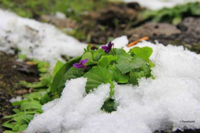 ՖՈՏՈԲնության ուժը: Մանուշակը ծաղկել է ձյան սառցե ճիրաններում: