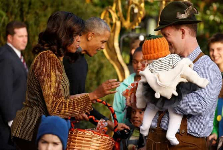 Նաեւ նրանք կոնֆետներ են բաժանել երեխաներին: «Այս օրը դուք կարող եք ուշադրություն չդարձնել Միշելին եւ մոռանալ առողջ սննդի մասին»,- մեջբերում Է անում The Washington Post-ն Օբամայի խոսքից: