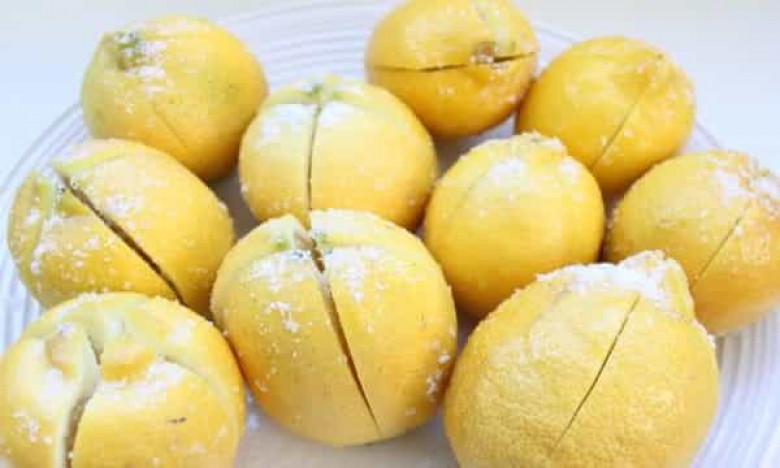 Կտրեք կիտրոնը 4 մասի, բայց համոզվեք, որ դուք չեք կտրել խորը, որովհետև դրանք չպետք առանձնացվեն: 4 մասերի վրա ավելացրեք մի փոքր աղ և դրեք խոհանոցի կենտրոնում: