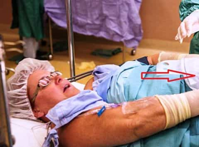 Վիրահատարանի մոտ գտնվող հատուկ լվացարանում լվացվել է ոչ միայն մանկաբարձ-գինեկոլոգը, այլև հենց ինքը՝ Գերին: Այնուհետև նրան երկու զույգ երկար ձեռնոց են հագցրել, նրան դրել վիրահատական սեղանին և էպիդուրալ անզգայացում կատարել: