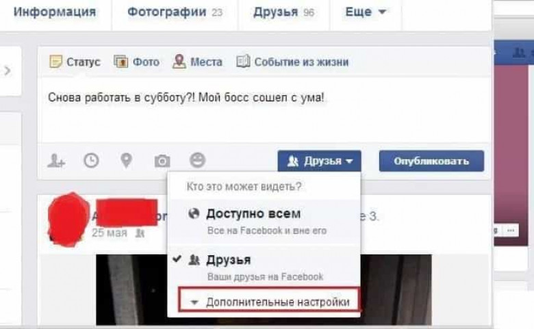 2.Կարելի է հրապարակումներով կիսվել բոլոր ընկերների հետ բացի մեկից: Այս դեպքում պետք է ուղղակի օգտվել «Օգտատիրոջ կարգավորումներ»-ից: