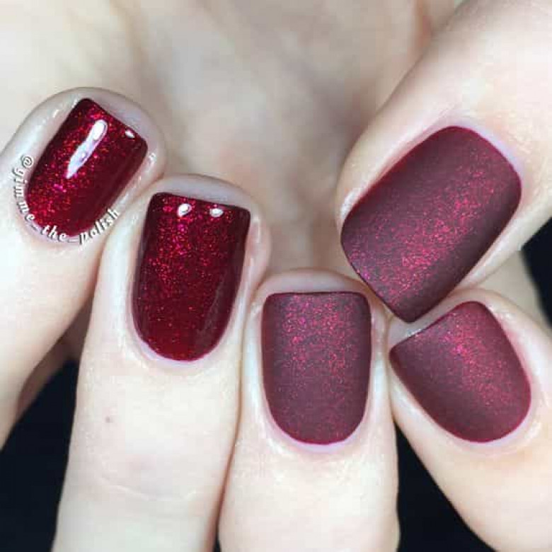 Ի դեպ, կարմիր մանիկյուրի հետ կարելի է կիրառել ոչ միայն թափանցիկ, այլև՝ այլ գույների լաքեր։ Մուգ բորդո լաքը հատկապես գեղեցիկ է դիտվում ոսկեգույն կամ արծաթագույն երանգի հետ համադրած։