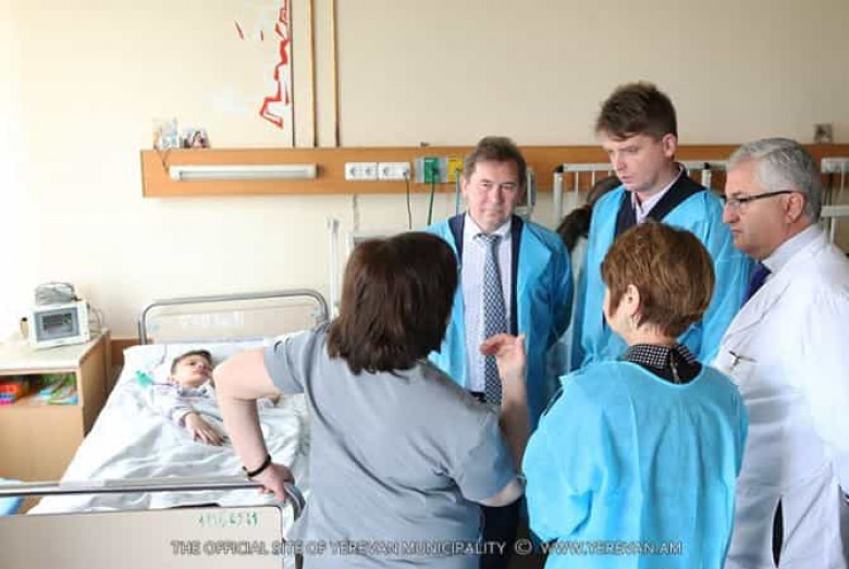 Սանկտ Պետերբուրգից ժամանած բժիշկները Երևանի քաղաքապետարանի «Սուրբ Աստվածամայր» բժշկական կենտրոնում բուժհաստատության տնօրեն Նիկոլայ Դալլաքյանի և բժիշկների ուղեկցությամբ ծանոթացել են բաժանմունքների աշխատանքին, մասնավորապես՝ վերակենդանացման բաժանմունքում բուժվող երեխաների հիվանդության պատմություններին և բուժման ընթացքին: