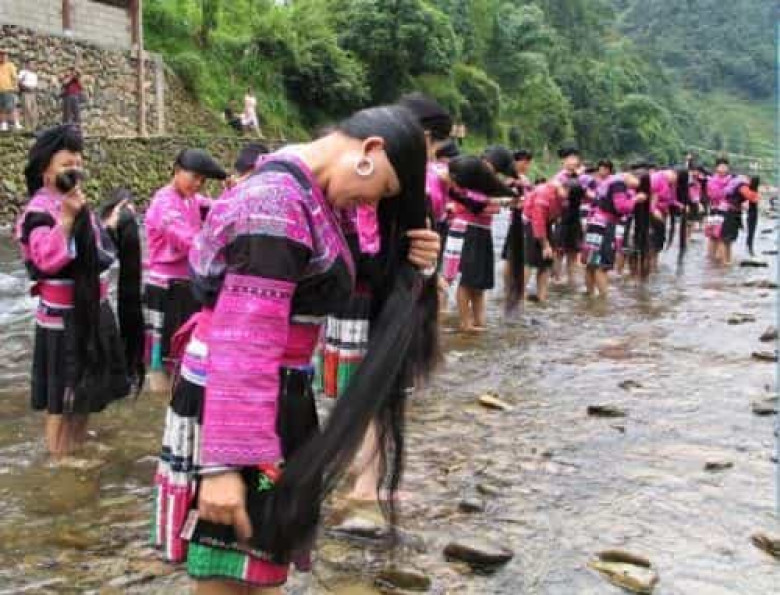 Հուանգլուի բնակչուհիներ բացել են իրենց գեղեցիկ վարսերի գաղտնիքը` պատմելով , որ դրանք լվանում են բրնձի ջրով պատրաստաված հատուկ շամպունով: