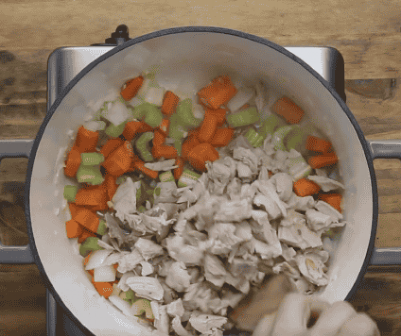 Կարագով կաթսան դնել կրակին, ավելացնել սոխ, սխտոր, նեխուր, գազար, հավի միս, մակարոն, արգանակ, աղ, պղպեղ, դափնու տերև։