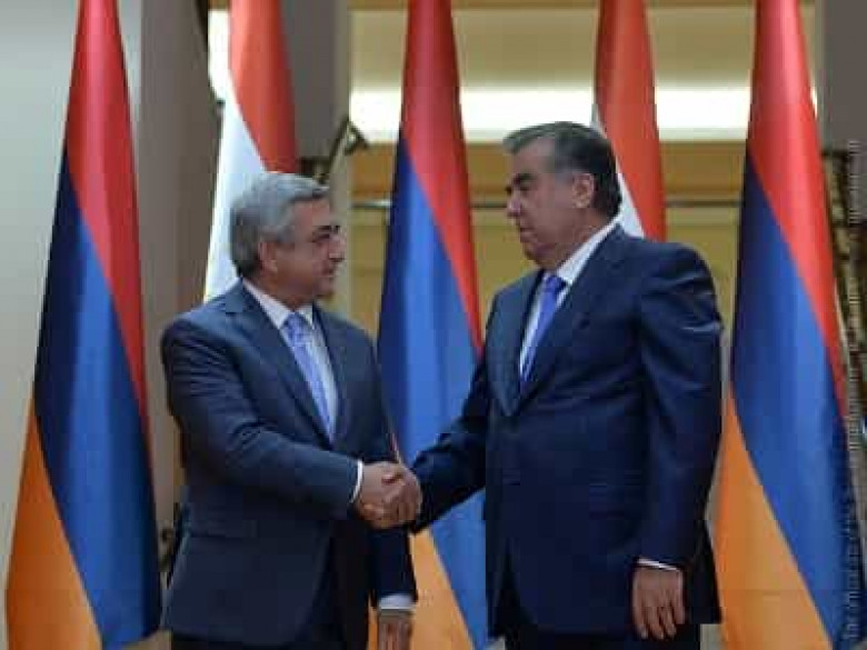 Էմոմալի Ռահմոնը ողջունել է նախագահ Սերժ Սարգսյանին եւ ընդգծել, որ Տաջիկստանը շահագրգռված է Հայաստանի հետ շարունակելու զարգացնել ավանդական բարեկամական հարաբերությունները, խորացնել կապերը ինչպես երկկողմ, այնպես էլ բազմակողմ ձեւաչափերում: Միջպետական հարաբերությունների ամրապնդման եւ տարբեր ոլորտներում համագործակցության զարգացման տեսանկյունից Նախագահ Ռահմոնը կարեւորել է երկու երկրների միջեւ իրավապայմանագրային դաշտի ընդլայնումը, որը, նրա համոզմամբ, կնպաստի նաեւ առեւտրաշրջանառության ծավալների աճին: