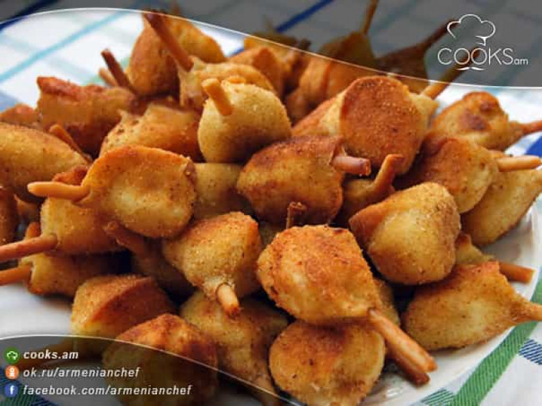 - Հետո թավալում ենք չորահացի փշրանքների մեջ: