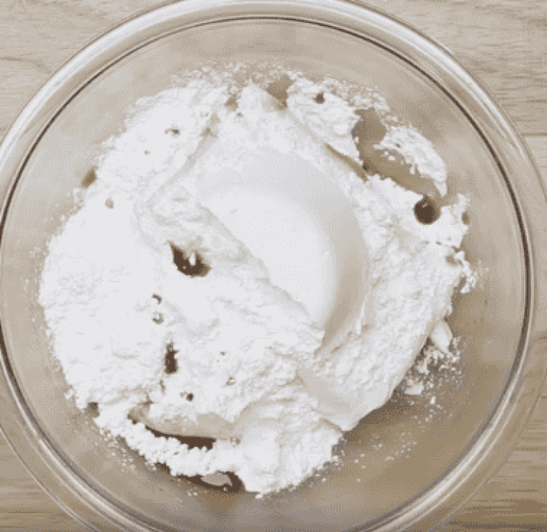 Ավելացնել աղ, շաքարի փոշի, կարագ, միախառնել, դնել սառնարան 10 րոպե։