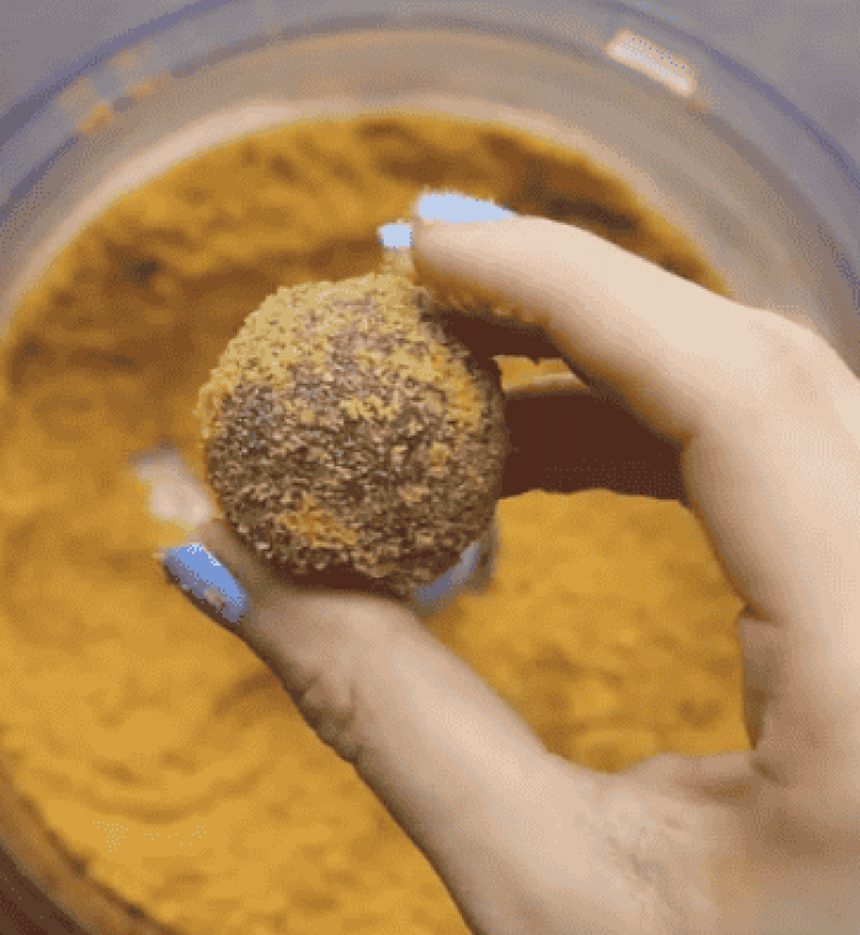 Սառը շոկոլադից գնդիկներ անել, թաթախել հարած բլիթների մեջ։
