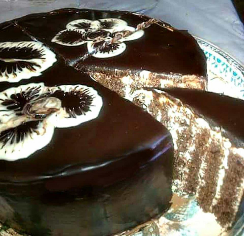 Վերցնել առաջին շերտը, քսել կրեմը և ապա փաթաթել, վերցնել հաջորդ շերտը, քսել կրեմը և փաթաթել առաջին շերտի շուրջը և այսպես շարունակ՝ մինչև վերջ։ Ապա ամբողջ ստացված զանգվածը պատել կրեմով, իսկ վրան լցնել հալած շոկոլադ։