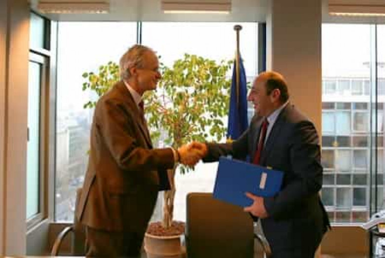 ՀԱՍԱՐԱԿՈՒԹՅՈՒՆԵվրոպական հանձնաժողովի Հարևանության և ընդլայնման շուրջ բանակցությունների գծով Գլխավոր տնօրեն Քրիստիան Դենիելսոնն ու Հայաստանի Հանրապետության Տնտեսական զարգացման և ներդրումների նախարար Սուրեն Կարայանը դեկտեմբերի 16-ին ստորագրել են երկու ֆինանսական համաձայնագրեր՝ միտված Հայաստանի աշխատանքային շուկայի արդյունավետության բարձրացմանն ու Հայաստանում ֆինանսների կառավարման համակարգի հզորացման աջակցությանը:
