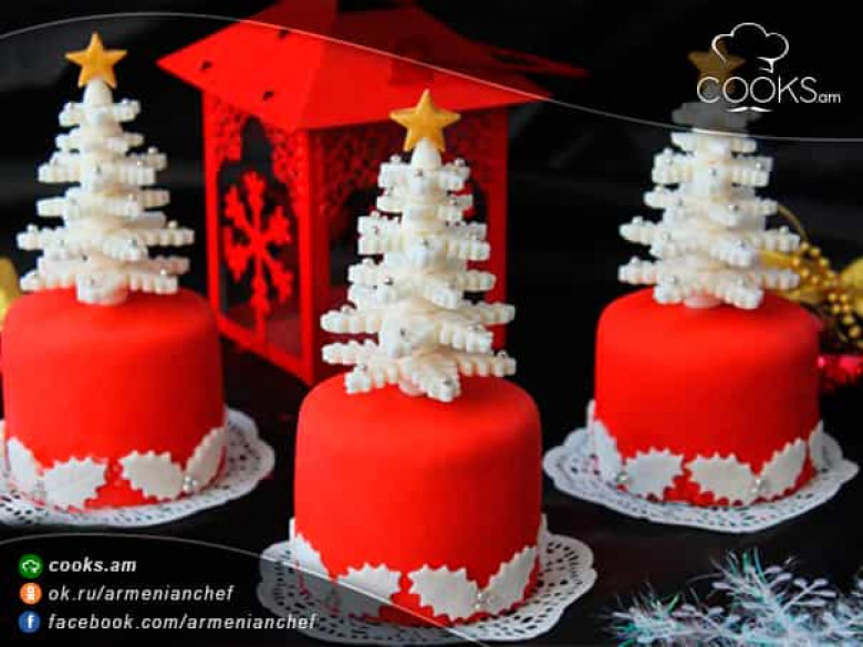 - Սպիտակ մարցիպանից պատրաստում ենք ձյունիկներ և աստղիկներ: Մենք ստանալու ենք 6 փոքր տորթ, իսկ յուրաքանչյուր համար անհրաժեշտ է` 2 մեծ, 2 մինջին և 2 փոքր չափսի ձյունիկներ 1 աստղիկ, 6 փոքր օղակ, փայտիկ և տերևներ (թողնում ենք 6-7 ժամ, որ չորանան):