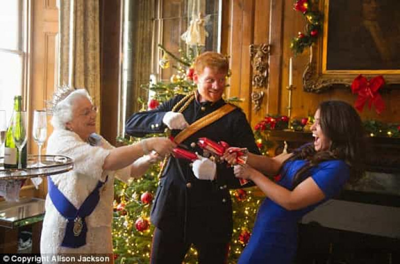ՖՈՏՈԲրիտանացի լուսանկարչուհի Էլիսոն Ջեքսոնը որոշել է պատկերել, թե ինչպիսի տեսք կունենա արքայազն Հարիի և նրա ընկերուհու` ամերիկացի դերասանուհի Մեգան Մարքլի համատեղ սուրբծննդյան ֆոտոշարքը, այն էլ` Մեծ Բրիտանիայի Էլիզաբեթ Երկրորդ թագուհու մասնակցությամբ: