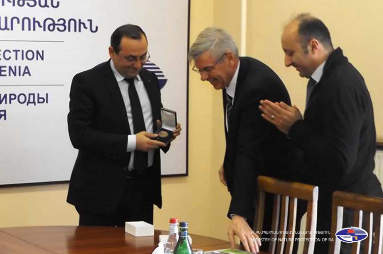 ՔԱՂԱՔԱԿԱՆԴեկտեմբերի 19-ին ՀՀ բնապահպանության նախարար Արծվիկ Մինասյանը հանդիպում է ունեցել«Veoliaջուր»ընկերության գլխավոր գործադիր տնօրեն Կրիստիան Լըֆեի հետ: Ֆրանսիական հայտնի ընկերությունը դարձել է Հայաստանում ջրամատակարարման միասնական օպերատոր և 2017 թվականի հունվարի 1-ից կսկսի իր աշխատանքը Հայաստանում: Ողջունելով հյուրին՝ նախարար Մինասյանը վստահություն է հայտնել, որ ընկերություննարդյունավետ աշխատանք կծավալի մեր երկրում՝ ջրամատակարարման, ջրահեռացման և կեղտաջրերի մաքրման աշխատանքներն ու բաժանորդների սպասարկումը լավագույնս իրականացնելու համար: «Veoliaջուր»ընկերության գլխավոր գործադիր տնօրեն Կրիստիան Լըֆեն շնորհակալություն է հայտնել Արծվիկ Մինասյանին՝ ընկերության հետ համատեղ աշխատանքի պատրաստակամության և համագործակցության համար: Նա համառոտ ներկայացրել է այն փոփոխությունները, որոնք նախատեսում են կատարել, նշելով, որ առաջիկայում նաև մասնագետներ կհրավիրվեն Ֆրանսիայից փորձի փոխանակման և տեղում աշխատանքների իրականացման գործընթացում նախատեսվող փոփոխությունների արդյունավետության նպատակով: Կրիստիան Լըֆեն նշել է, որ բոլոր աշխատանքները կատարվելու են բնապահպանական նորմերին համապատասխան: Հանդիպման ընթացքումանդրադարձ է եղել խնդրահարույց հարցերի, մասնավորապես, նախարար ԱրծվիկՄինասյանը խոսել է ջրամատակարարման համակարգում մեծ տոկոս կազմող ջրակորստի մասին, նշել ջրահեռացման ոլորտում կենսաբանական մաքրման կայանների ներդրման անհրաժեշտությունը: Կրիստիան Լըֆեն տեղեկացրել է, որ համապատասխան ուսումնասիրություններ են արվում և իրենց փորձն անշուշտ կկիրառեն լավագույն համակարգ ստեղծելու համար: Հանդիպման ավարտին «Veoliaջուր»ընկերության գլխավոր գործադիր տնօրենը Արծվիկ Մինասյանին պարգևատրել է «Veolia» ոսկե մեդալով` համագործակցության և համատեղ աշխատանքին միտված պատրաստակամության հանձնառության համար:«Սա բնապահպանության նախարարության ողջաշխատակազմի աշխատանքի գնահատականն է»,-Կրիստիան Լըֆեից ստանալով պարգևը նշել է բնապահպանության նախարար Արծվիկ Մինասյանը Подробнее: https://shabat.am/am/article/106203/Nakharar-Artsvik-Minasyany-handipum-e