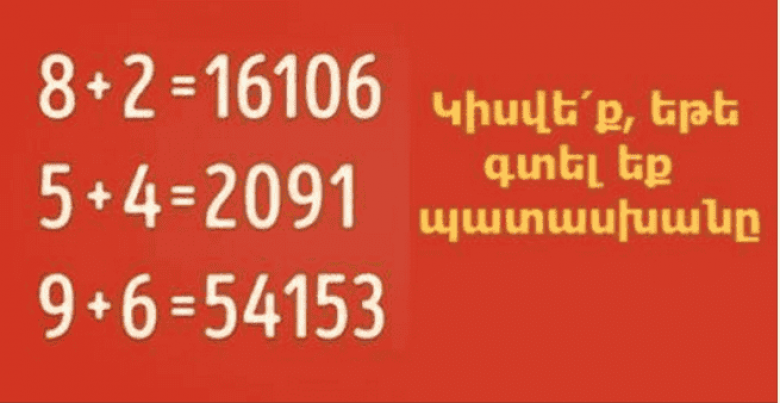 ՖՈՏՈՇատ դպրոցականներ տանել չեն կարողանում մաթեմատիկան՝ խիստ և բարդ օրենքների պատճառով, սակայն այս հավասարումը կոտրում է բոլոր հայտնի մաթեմատիկական օրենքնրը։ Կկարողանա՞ք լուծել այն