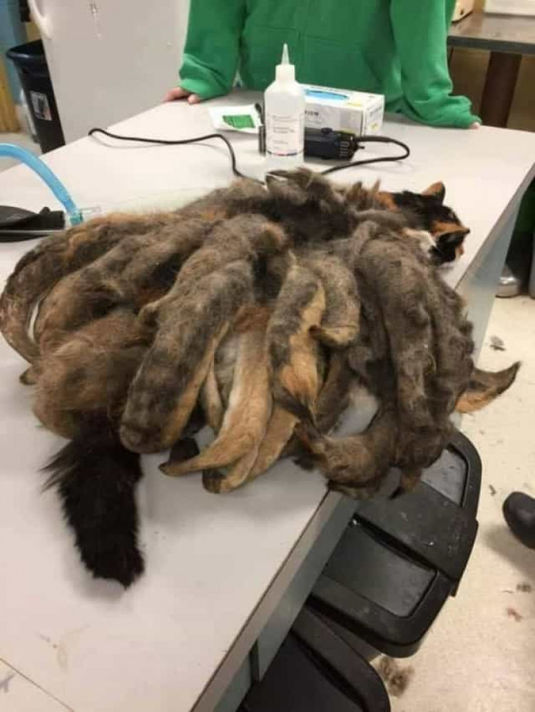 ՖՈՏՈՓենսիլվանիա նահանգի Պիտսբուրգ քաղաքի կենդանիների պաշտպանության կենտրոն բերեցին մի կատվի, ում ծեր տիրուհին վերջերս էր մահացել: Մի քանի տարիների ընթացքում ոչ ոք չէր խնամել կենդանու մազածածկույթը և արդյունքում կատվի մոտ դրեդանման սանրվածք էր ստացվել:
