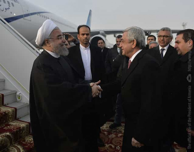 ՔԱՂԱՔԱԿԱՆՆախագահ Սերժ Սարգսյանի հրավերով պաշտոնական այցով այսօր Հայաստանի Հանրապետություն է ժամանել Իրանի Իսլամական Հանրապետության Նախագահ Հասան Ռոհանին: Երևանի «Զվարթնոց» միջազգային օդանավակայանում բարձրաստիճան հյուրին դիմավորել է Հանրապետության Նախագահը: