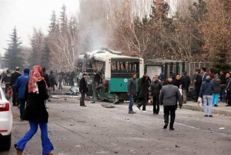 Թուրքիայի Կայսերի քաղաքում գտնվող Էրջիես համալսարանի մասնաշենքի դիմաց դեկտեմբերի 17-ի առավոտյանպայթյուն է տեղի ունեցել: Զինվորականներին տեղափոխող ավտոբուսի կողքը պայթեցվել է ավտոմեքենա: Պաշտոնականտվյալներով` զոհվել է 14 զինվոր, 56-ը վիրավորվել են: Երկրի իշխանությունները կատարվածի պատասխանատու ենճանաչել Քրդական բանվորական կուսակցությանը: