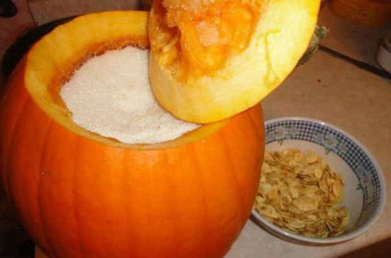 · Դդմի մեղր պատրաստելու համար նախ հարկավոր է վերցնել դդում, կտրել դրա վերին հատվածը և հեռացնել սերմերը: