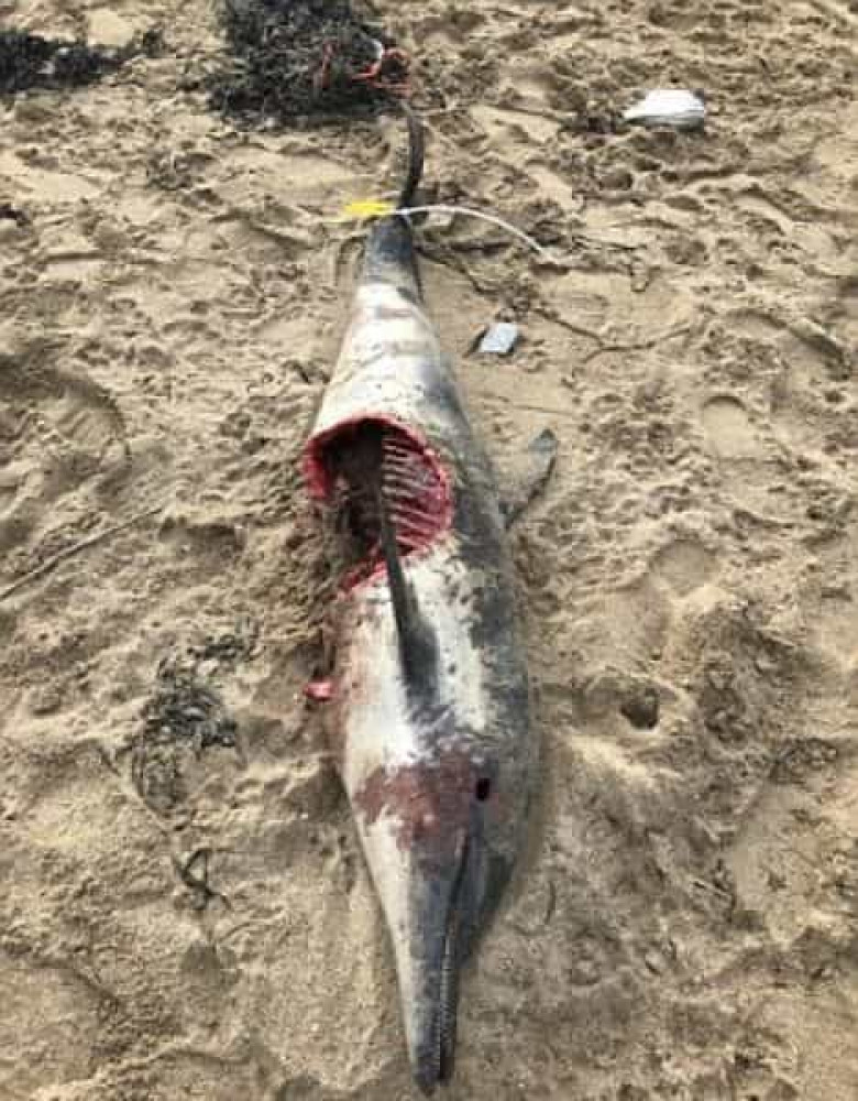 27-ամյա Ջեյք Օմախոնին բրիտանական Նյուքվեյն քաղաքի ափամերձ հատվածում հայտնաբերեց սատկած դելֆինի, որից շնաձուկը մի մեծ պատառ էր պոկել: Ամենայն հավանականությամբ գիշատիչը շատ քաղցած է եղել, որ դիմել է նման քայլի: