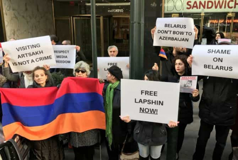 ՄԻՋԱԶԳԱՅԻՆՀայ դատի ԱՄՆ հանձնախումբը Վաշինգտոնում և Նյու Յորքում Բելառուսի դիվանագիտական ներկայացուցչությունների մոտ բողոքի ակցիաներ է կազմակերպել` պահանջելով անհապաղ և առանց նախապայմանների ազատ արձակել ՌԴ և Իսրայելի քաղաքացի բլոգեր Ալեքսանդր Լապշինին: Ինչպես հաղորդում է «Արմենպրես»-ը, հավաքվածներն իրենց զայրույթն են հայտնել Ադրբեջանի կողմից լրատվամիջոցների և լրագրողների նկատմամբ շարունակվող բռնություններ « առնչությամբ` ընդգծելով, որ Լապշինն այդ քաղաքականության վերջին զոհն է: