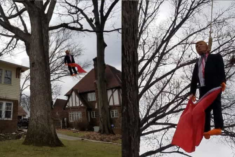 ԱՄՆ-ում ծառին Թրամփի տեսքով տիկնիկ են կախել՝ ձեռքին խորհրդային դրոշ