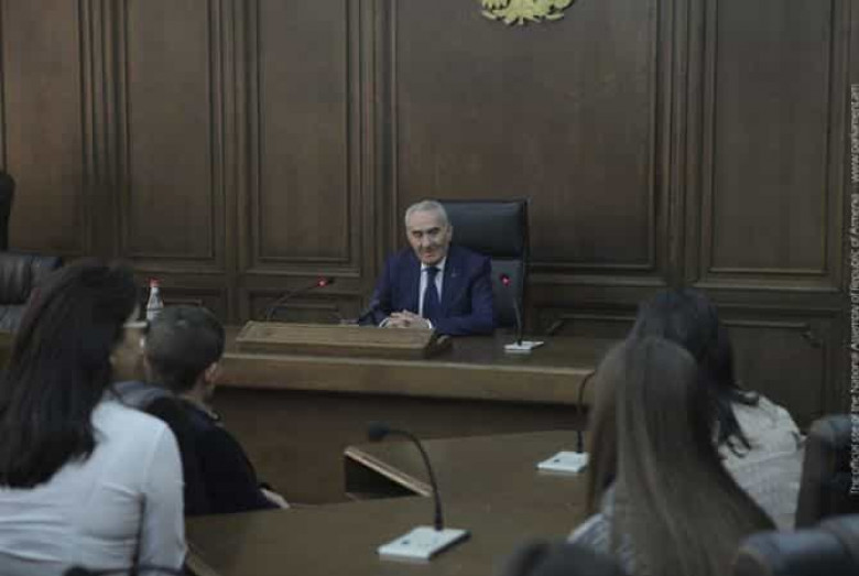 «Բաց դասի» ավարտին խորհրդարան այցելած հյուրերը նիստերի դահլիճում լուսանկարվել են ԱԺ նախագահի հետ: