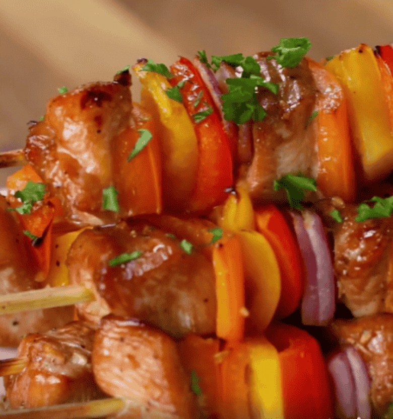 Բանջարեղենն ու միսը անցկացնել փայտիկների վրա;