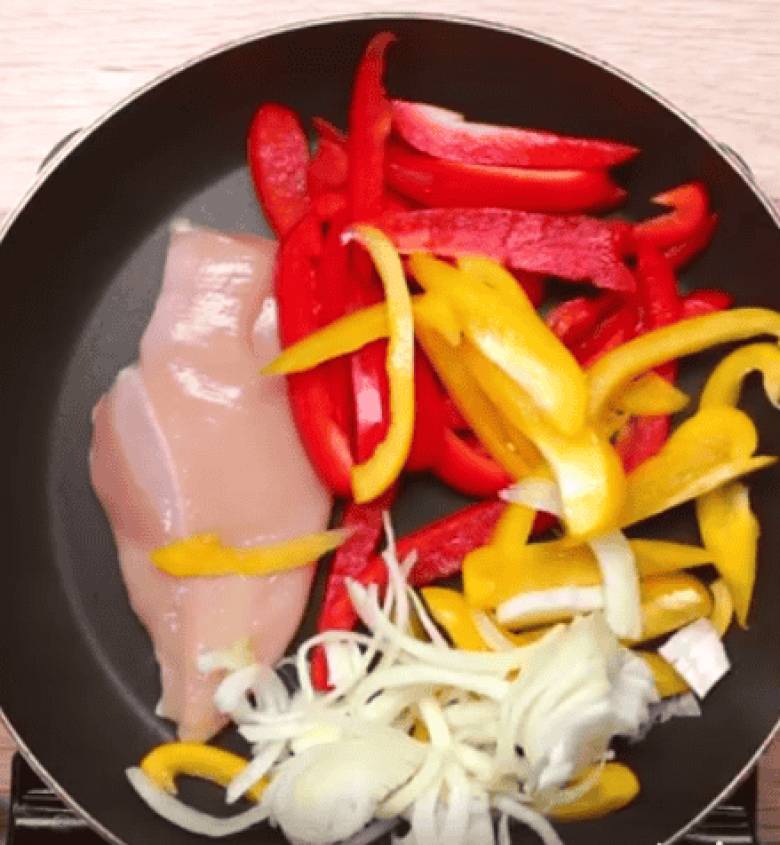 Հավի միսն ու պղպեղը տապակել՝ համեմելով աղով, պղպեղներով: