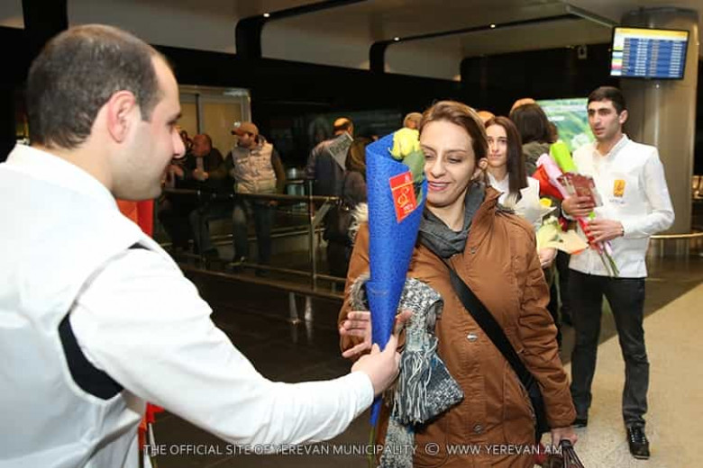 ՀԱՍԱՐԱԿՈՒԹՅՈՒՆԿանանց միջազգային օրվա առիթով Երևանի քաղաքապետարանի շնորհավորանքները մեկնարկել են «Զվարթնոց» օդանավակայանում: Երևան ժամանող բոլոր կանանց և աղջիկներին ժամանման սրահում սպասվում են անակնկալներ: Նրանց դիմավորում են բարձր տրամադրությամբ և նվիրում ծաղիկներ ու շնորհավորական բացիկներ: