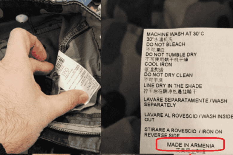 Թեև OVS-ի Բաքվի ներկայացուցչությունը հերքում է, որ հագուստը կարված է Հայաստանում, միևնույն է պիտակները պնդում են հակառակը։