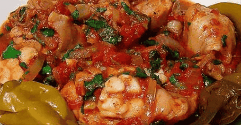 Հավի միսը կտրտել փոքր կտորների, (3-4 մասնաբաժնով), դնել թավայի մեջ և եփել փակ կապարիչի տակ։ Քանի դեռ հավը եփում է, փոքր կտորների կտրատել լոլիկը և եփել, ավելացնելով տոմատի մածուկ։ Առանձին թասի մեջ լցնել հավի արգանակը։